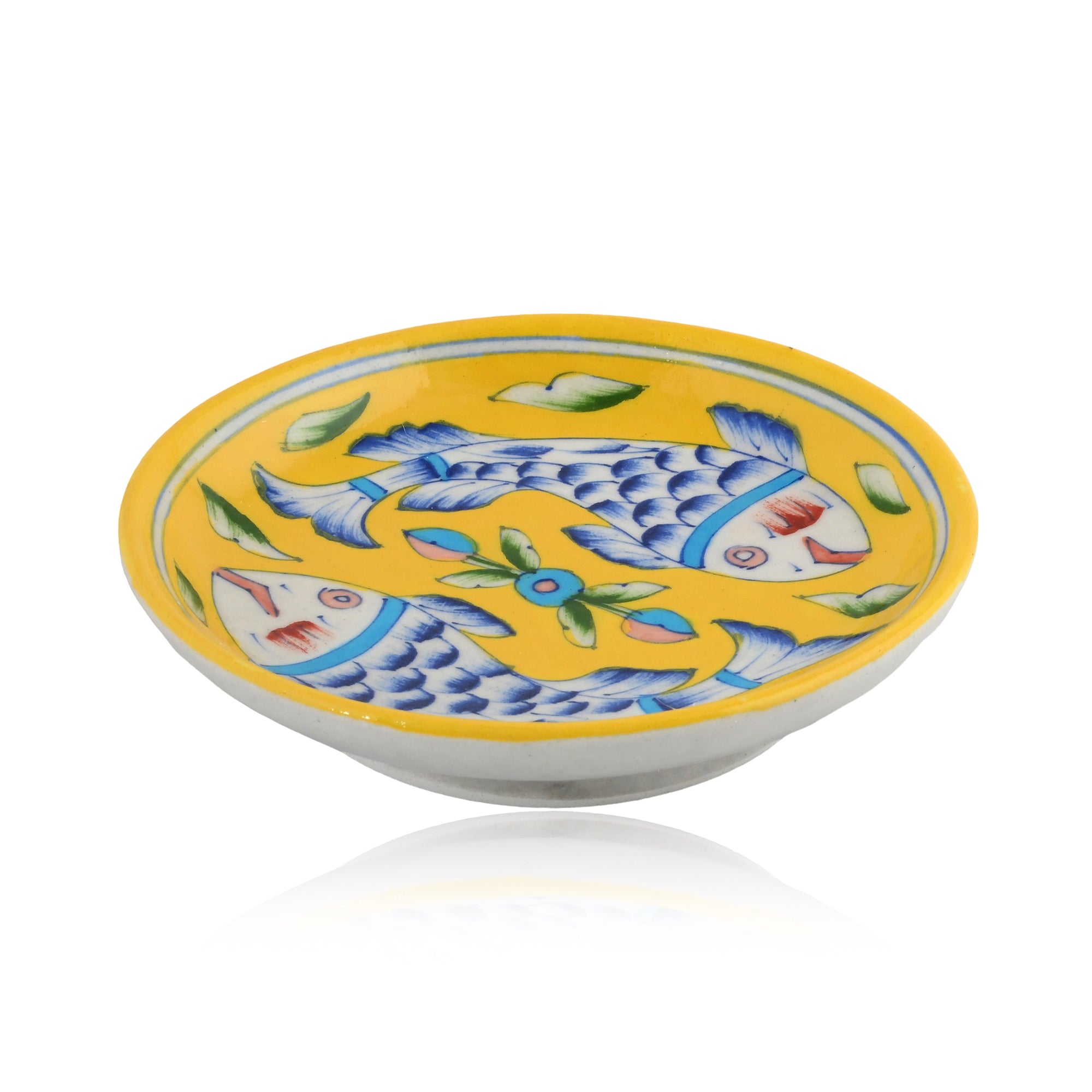 Blue Pottery Fish Pattern Decorative Plate—Yellow —6”