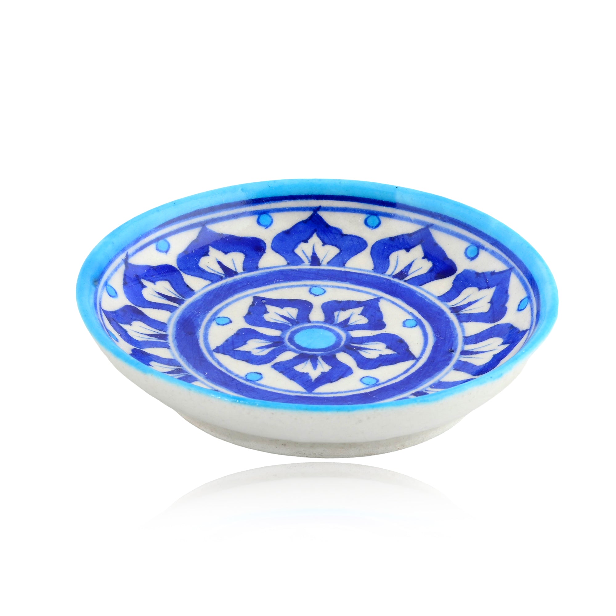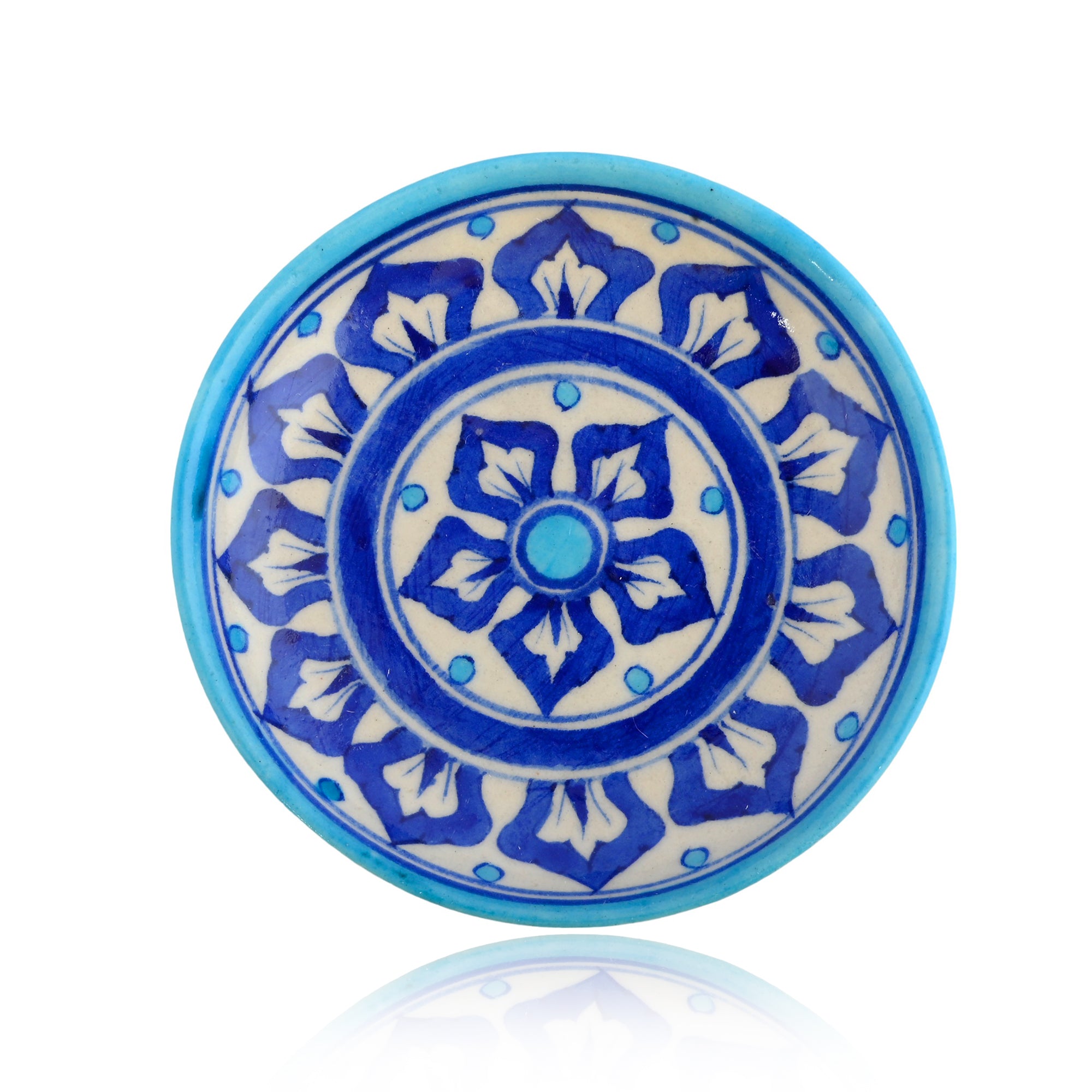 Blue Pottery Art—Handcrafted and hand-painted by skilled artisans.Floral pattern decorative plate—Blue.Ideal for kitchen décor and wall décor.Perfect and thoughtful gifting.