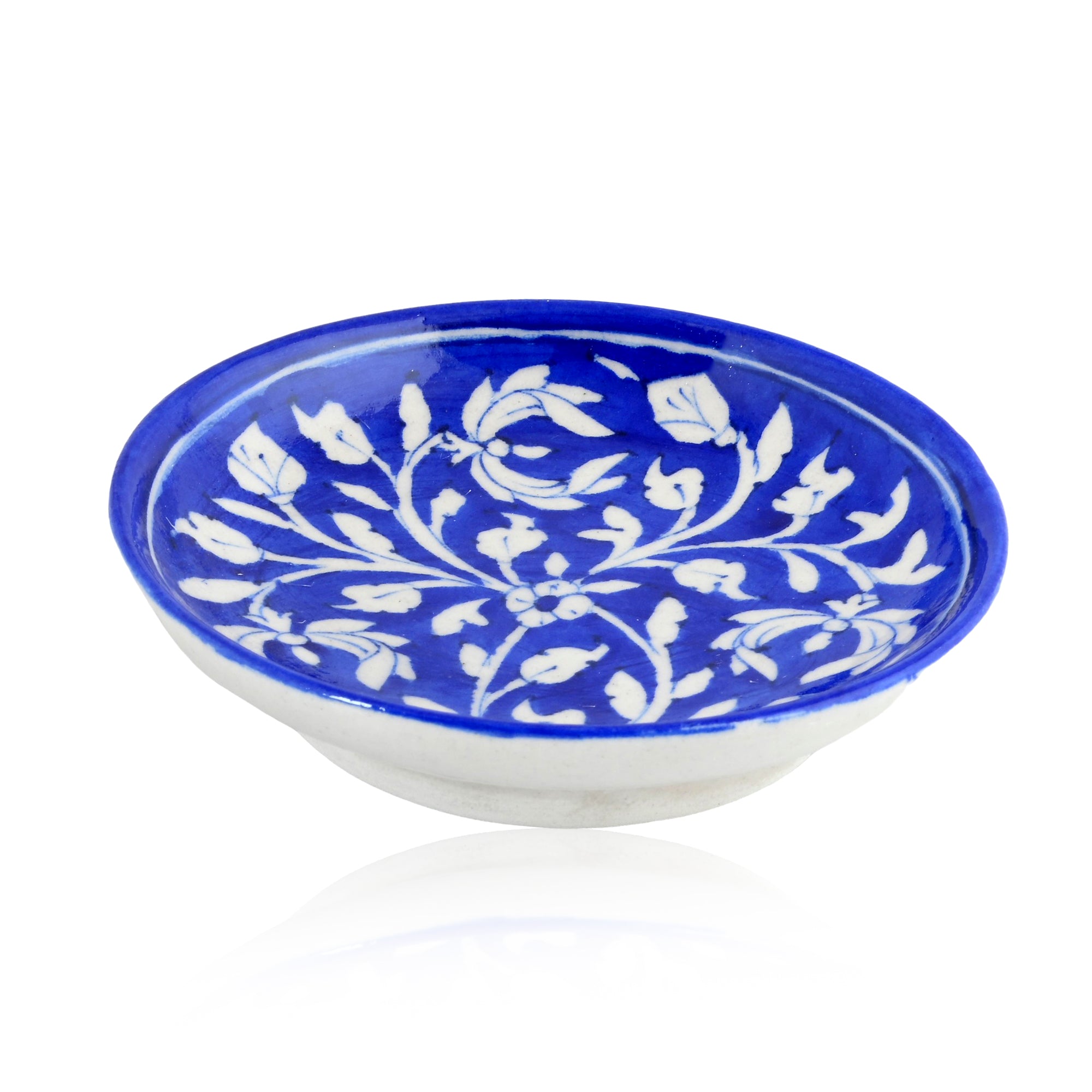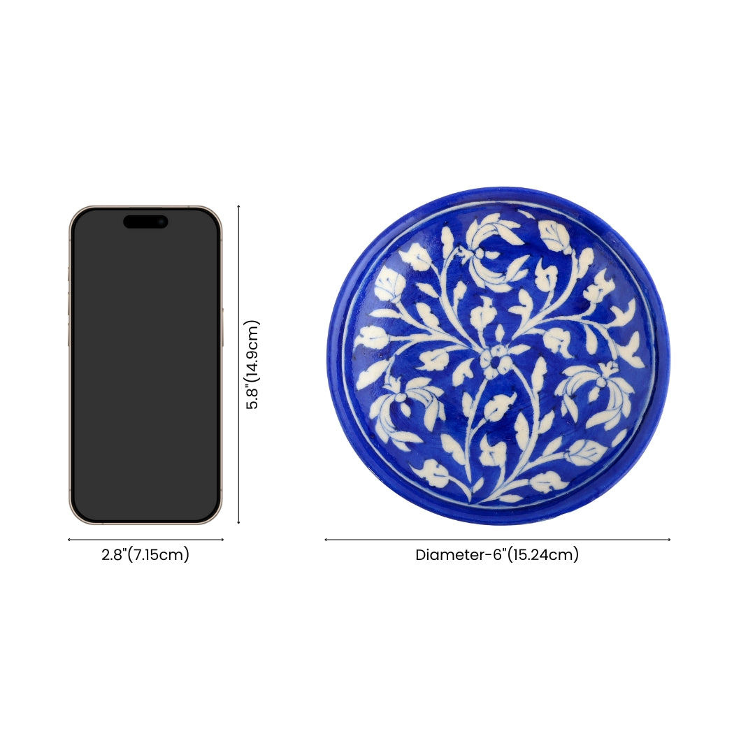 Blue Pottery Floral Pattern Decorative Plate—Cobalt Blue—6”-A