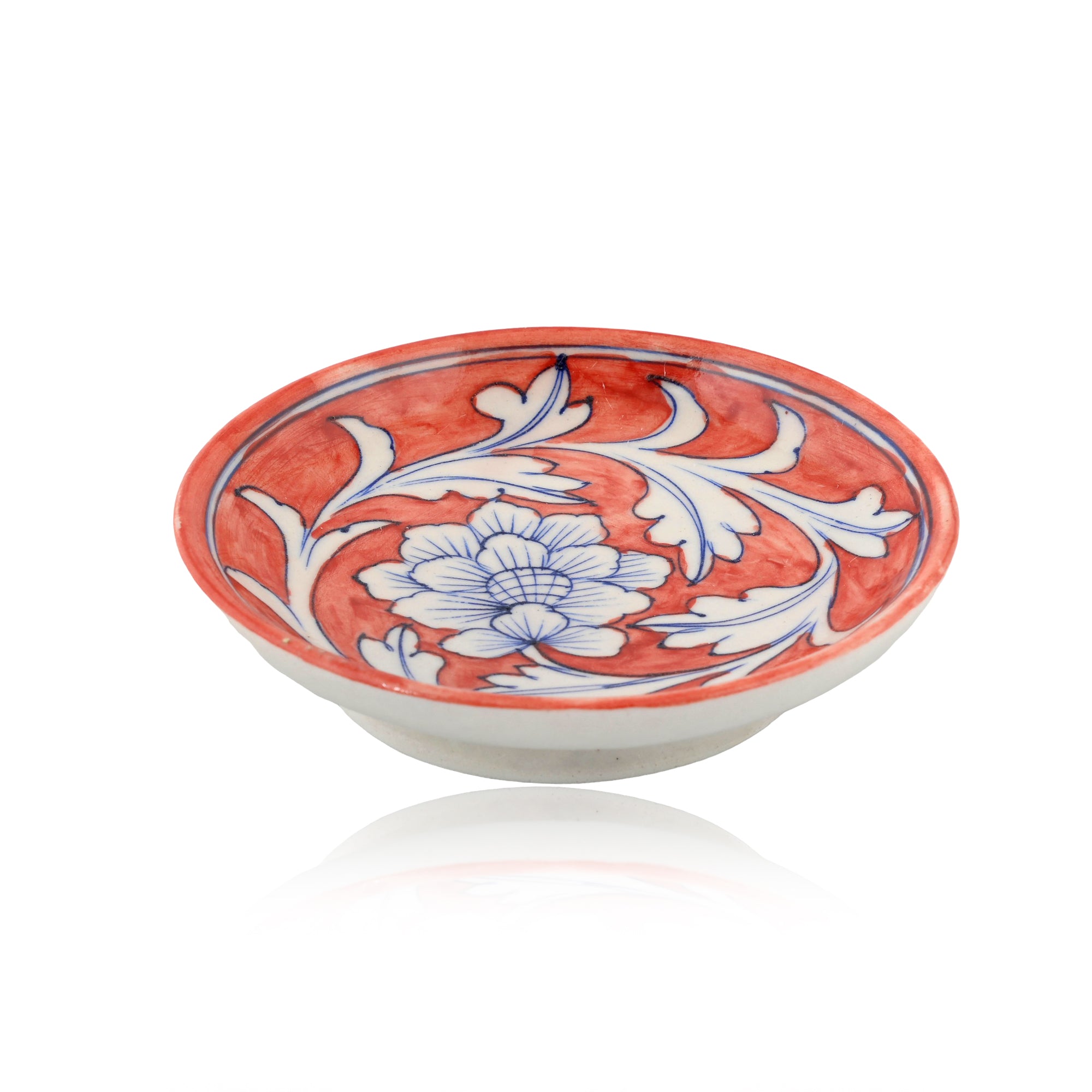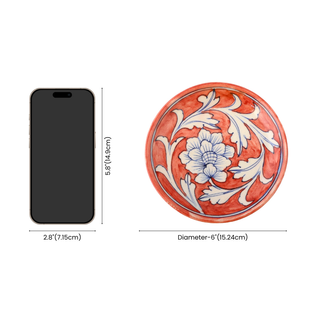 Blue Pottery Floral Pattern Decorative Plate—Red—6”