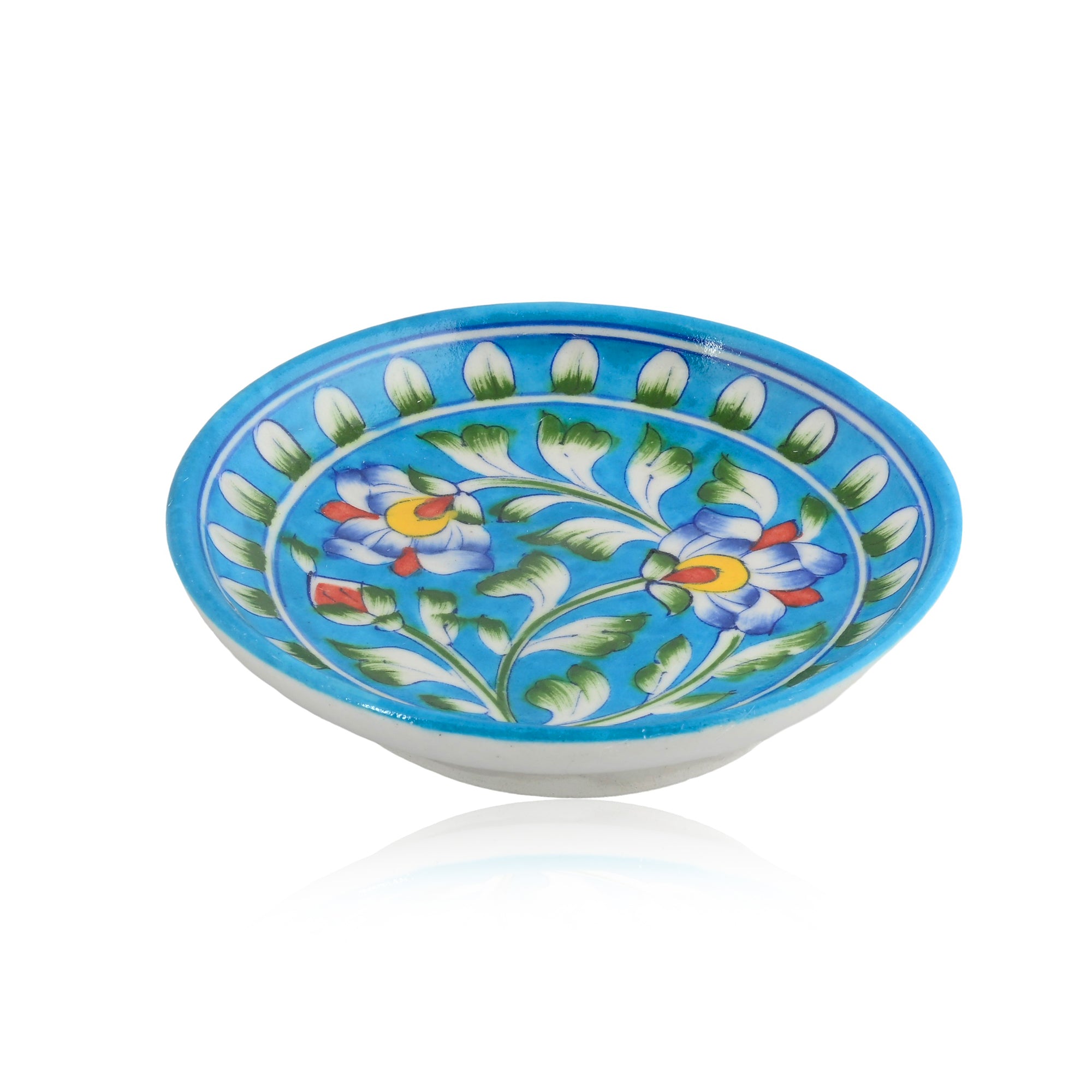Blue Pottery Art—Handcrafted and hand-painted by skilled artisans.Floral pattern decorative plate—Turquoise.Ideal for kitchen décor and wall décor.Perfect and thoughtful gifting.