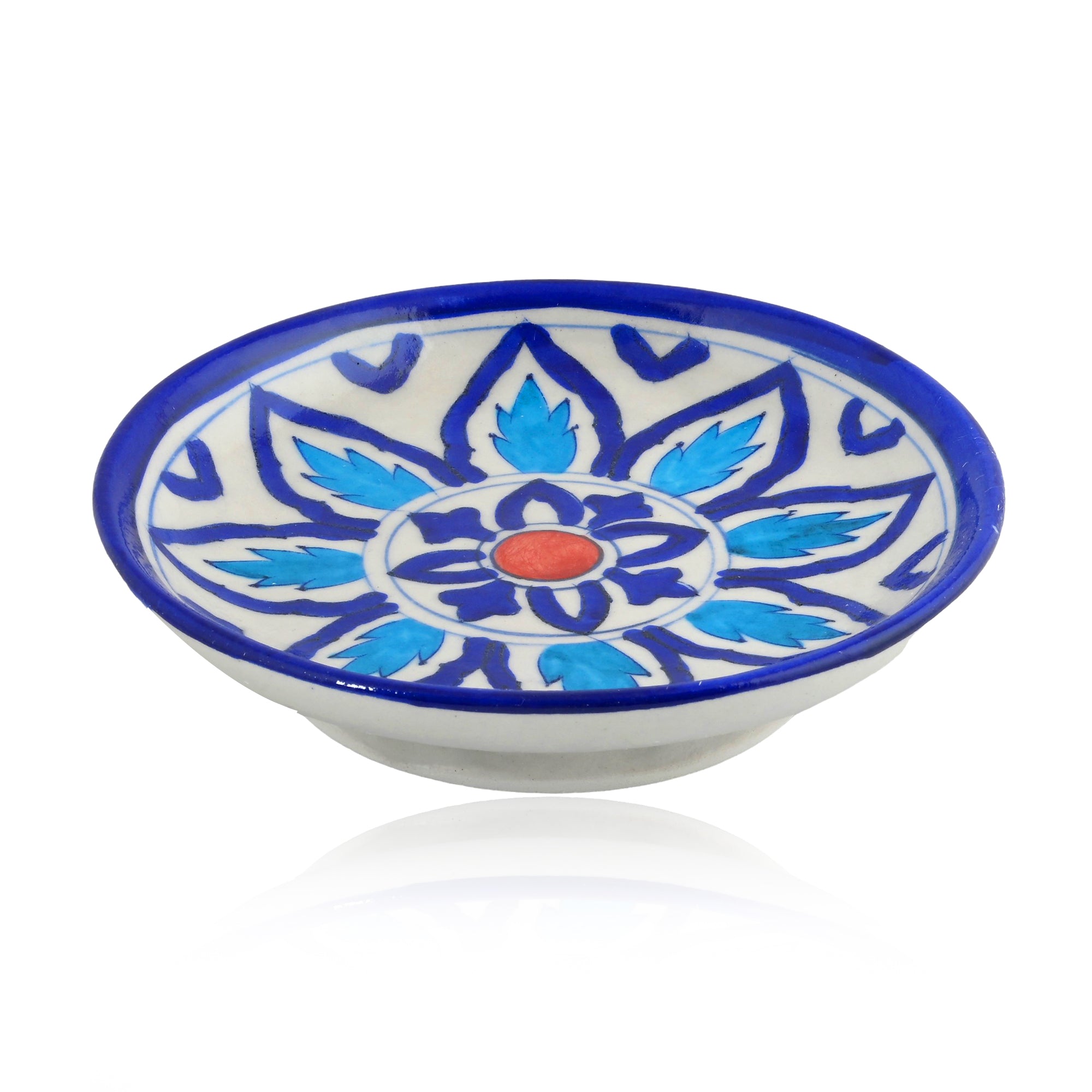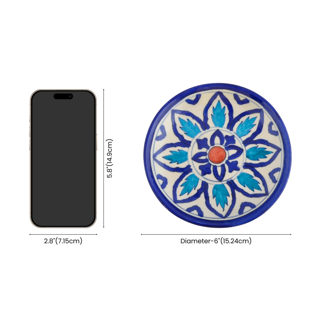 Blue Pottery Floral Pattern Decorative Plate—White & Blue—6”