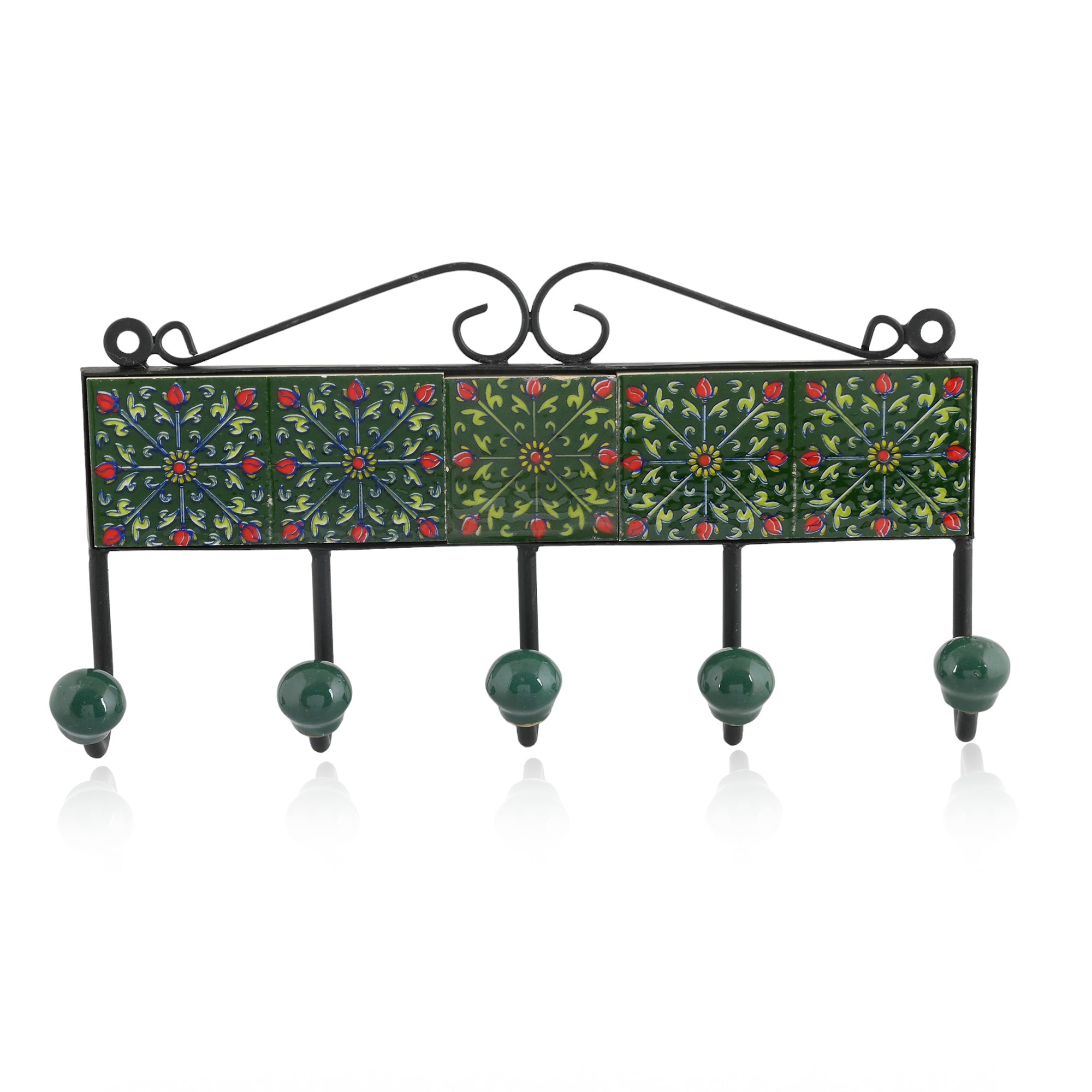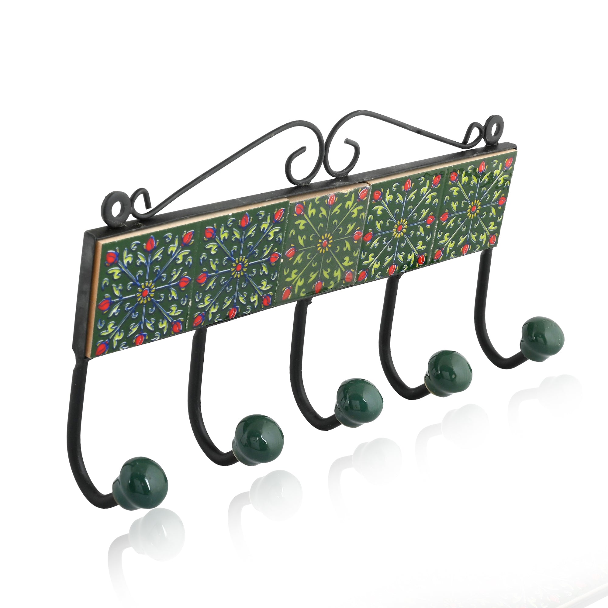 Ceramic Art—Handcrafted and hand-painted by skilled artisans. Floral pattern decorative Key Hanger—Green. Ideal for home décor. Perfect and thoughtful gifting.