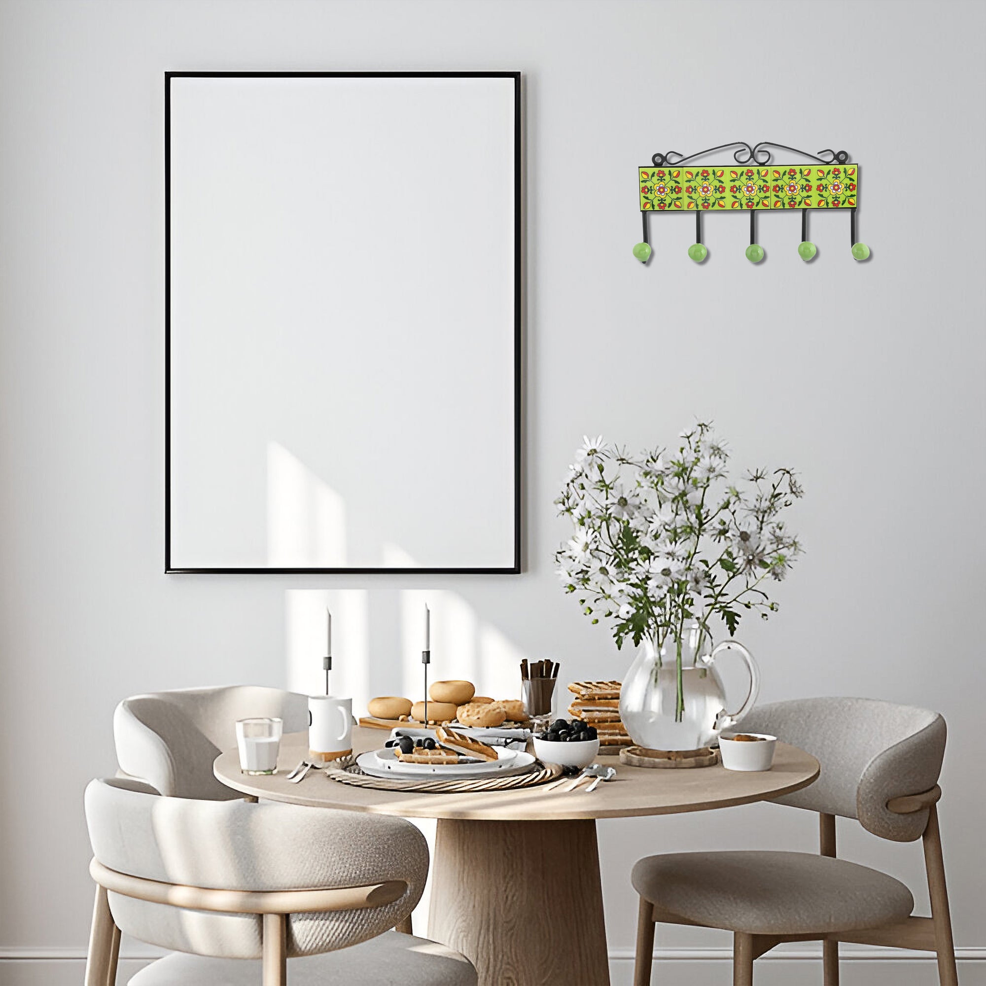 Ceramic Art—Handcrafted and hand-painted by skilled artisans. Floral pattern decorative Key Hanger—Green. Ideal for home décor. Perfect and thoughtful gifting.