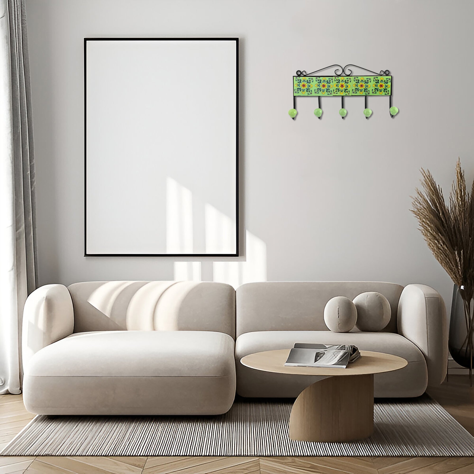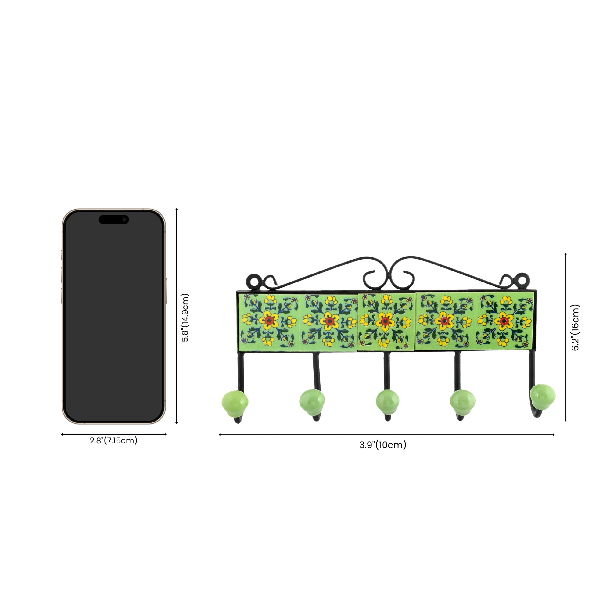 Ceramic Art—Handcrafted and hand-painted by skilled artisans. Floral pattern decorative Key Hanger—Mint Green. Ideal for home décor. Perfect and thoughtful gifting.