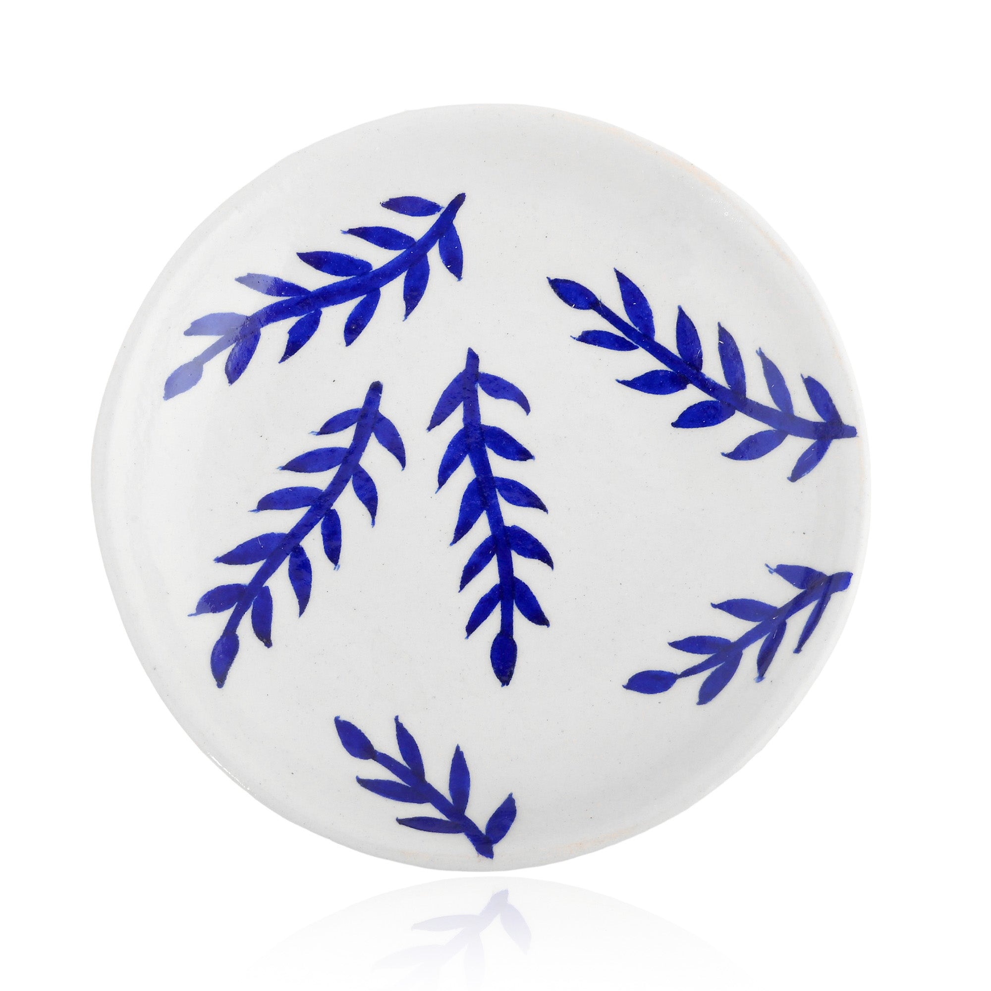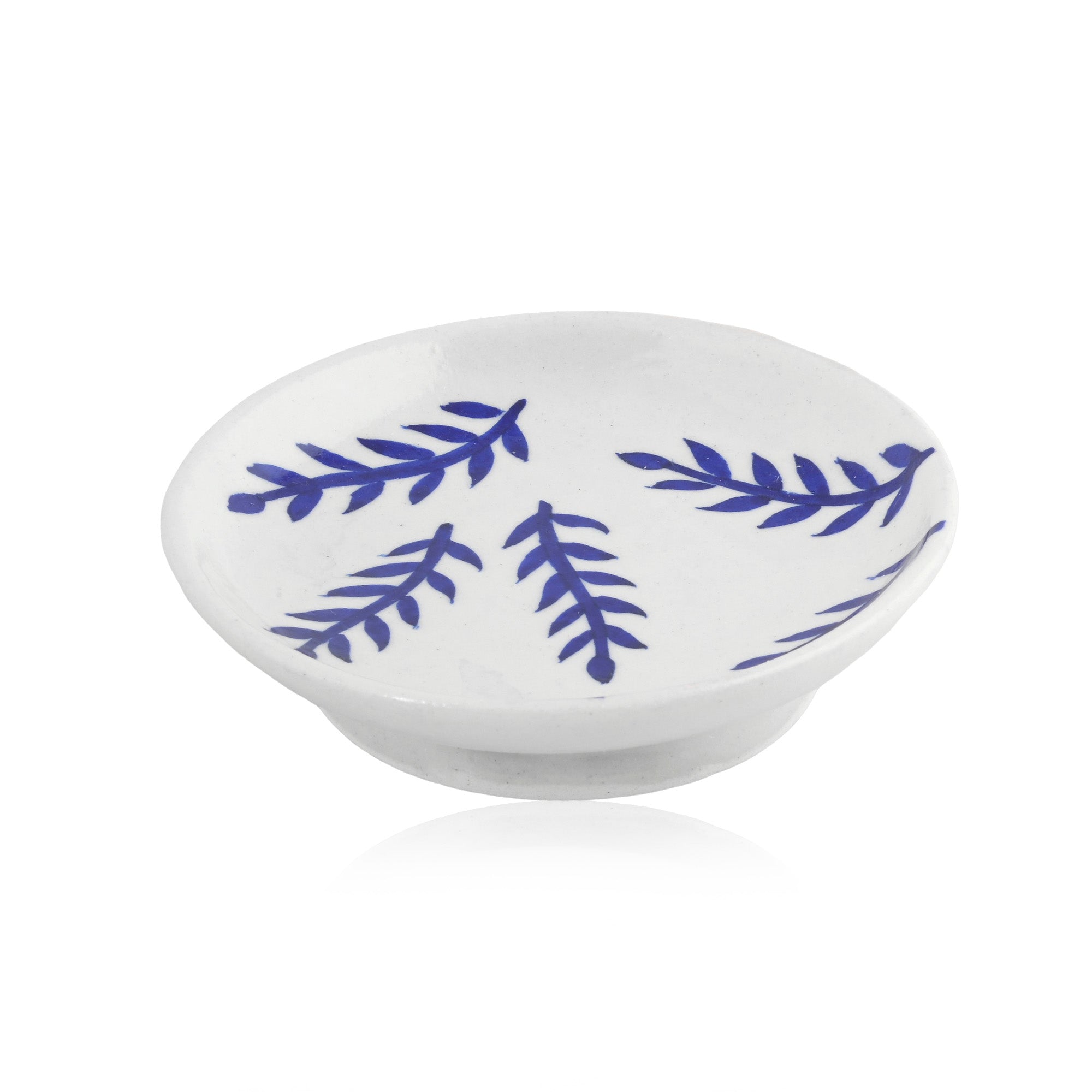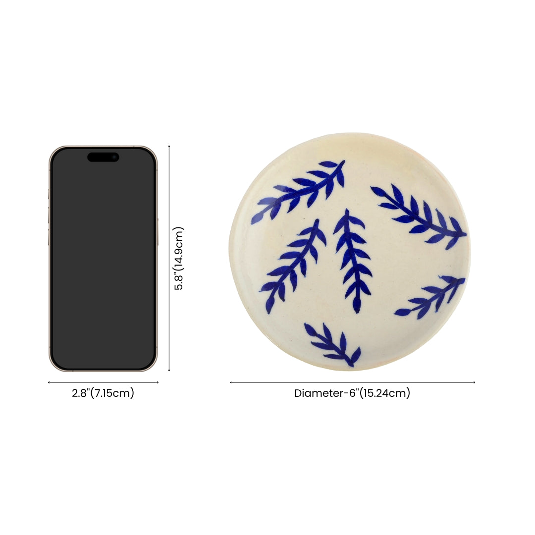Blue Pottery Leaves Pattern Decorative Plate—White and Blue —6”