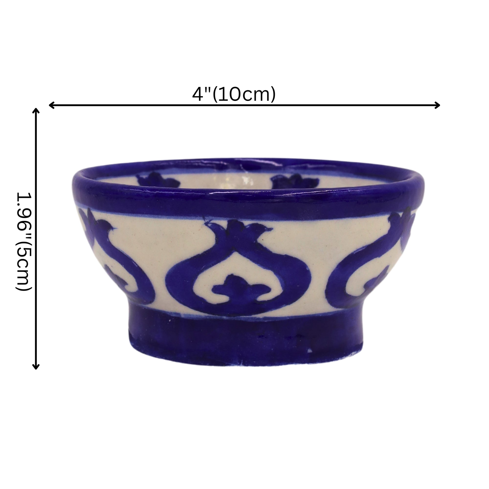Hand-painted round blue pottery bowl. Handcrafted in Jaipur.