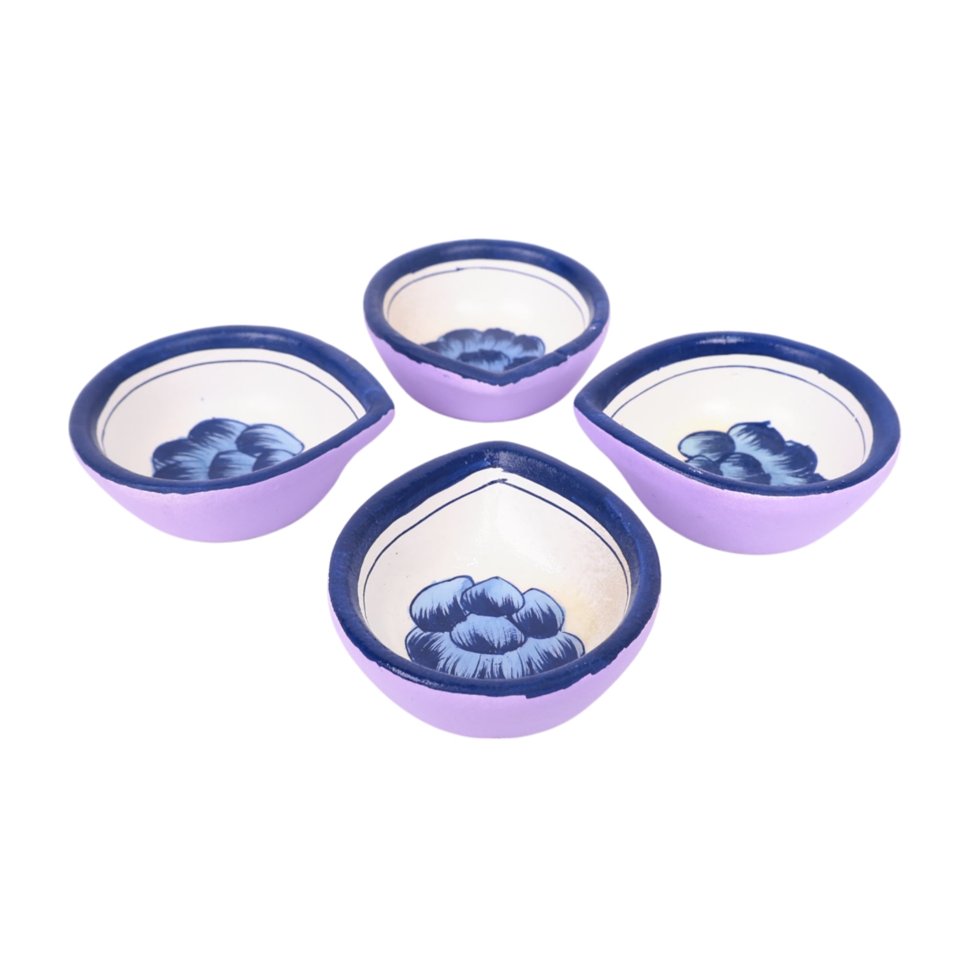 Hand-Painted Ceramic Diyas - Set of 4 - Lavender and Blue
