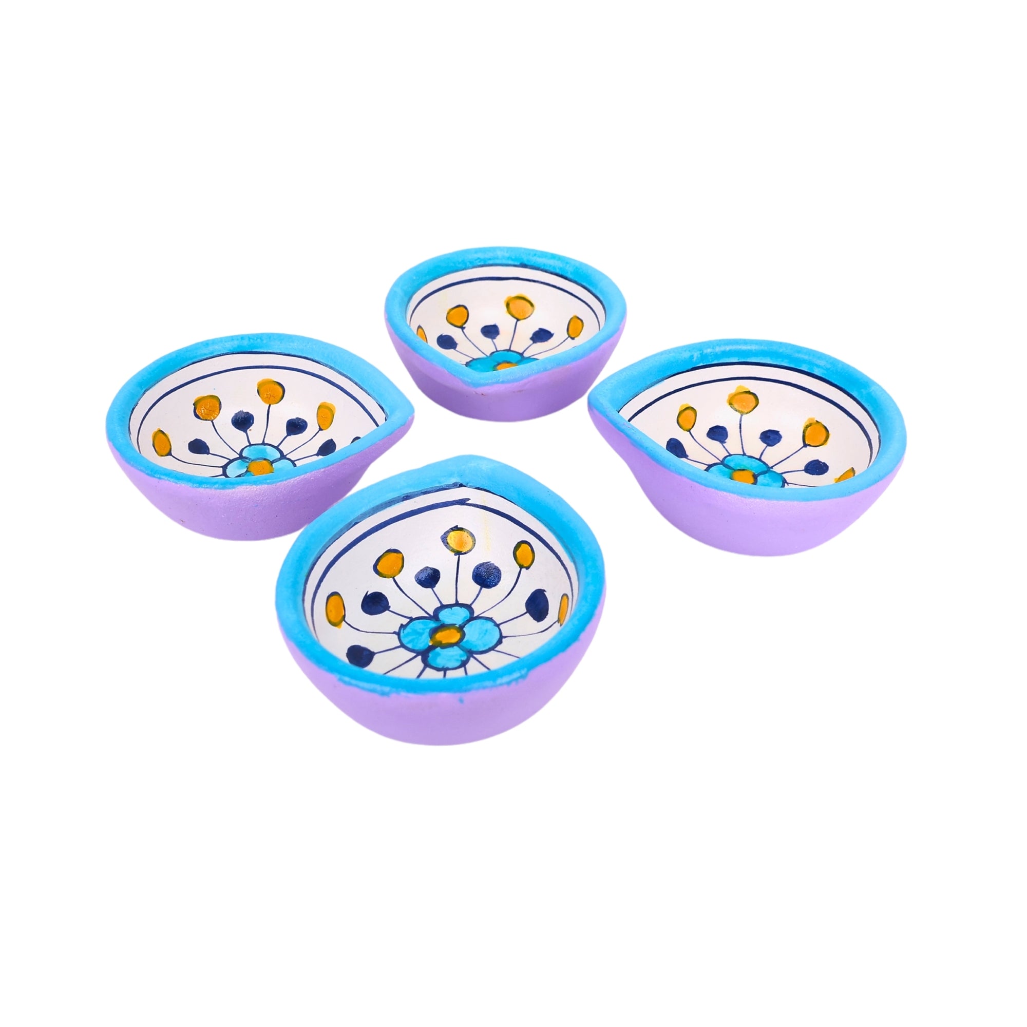 Hand-Painted Ceramic Diyas - Set of 4 – Lavender & Turquoise