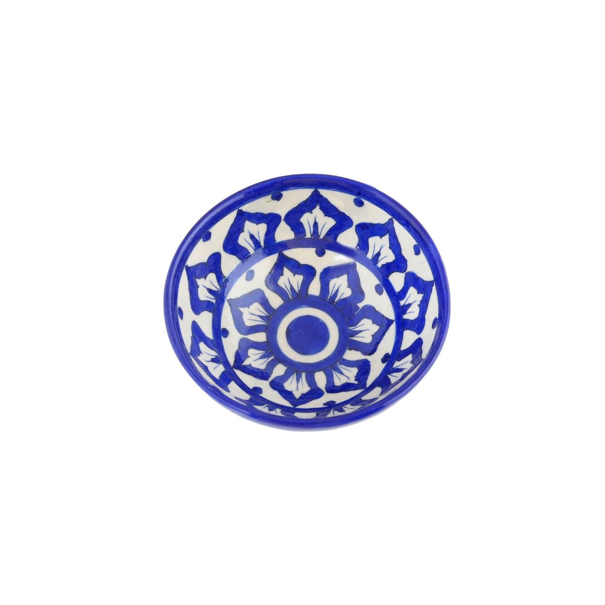 Blue Pottery Art—Handcrafted and Hand painted by skilled artisans. Set of 2 floral patten round bowl—6 inches Ideal for kitchen décor and home décor. Perfect and thoughtful gifting.