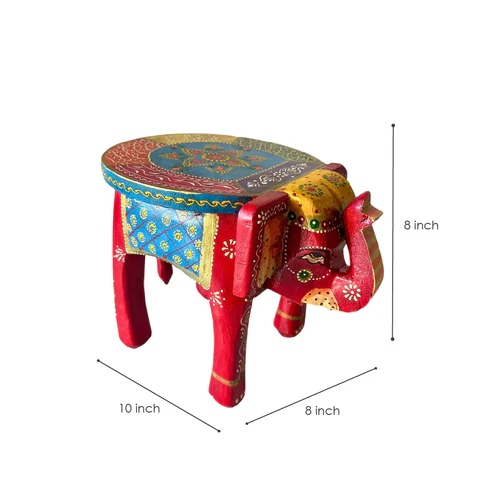 "Size: Height: 8 inch, Length: 10 inch, Width: 8 inch Pack Content: 1 Elephant Wooden Stool Craft: Wooden Craft from Rajasthan"